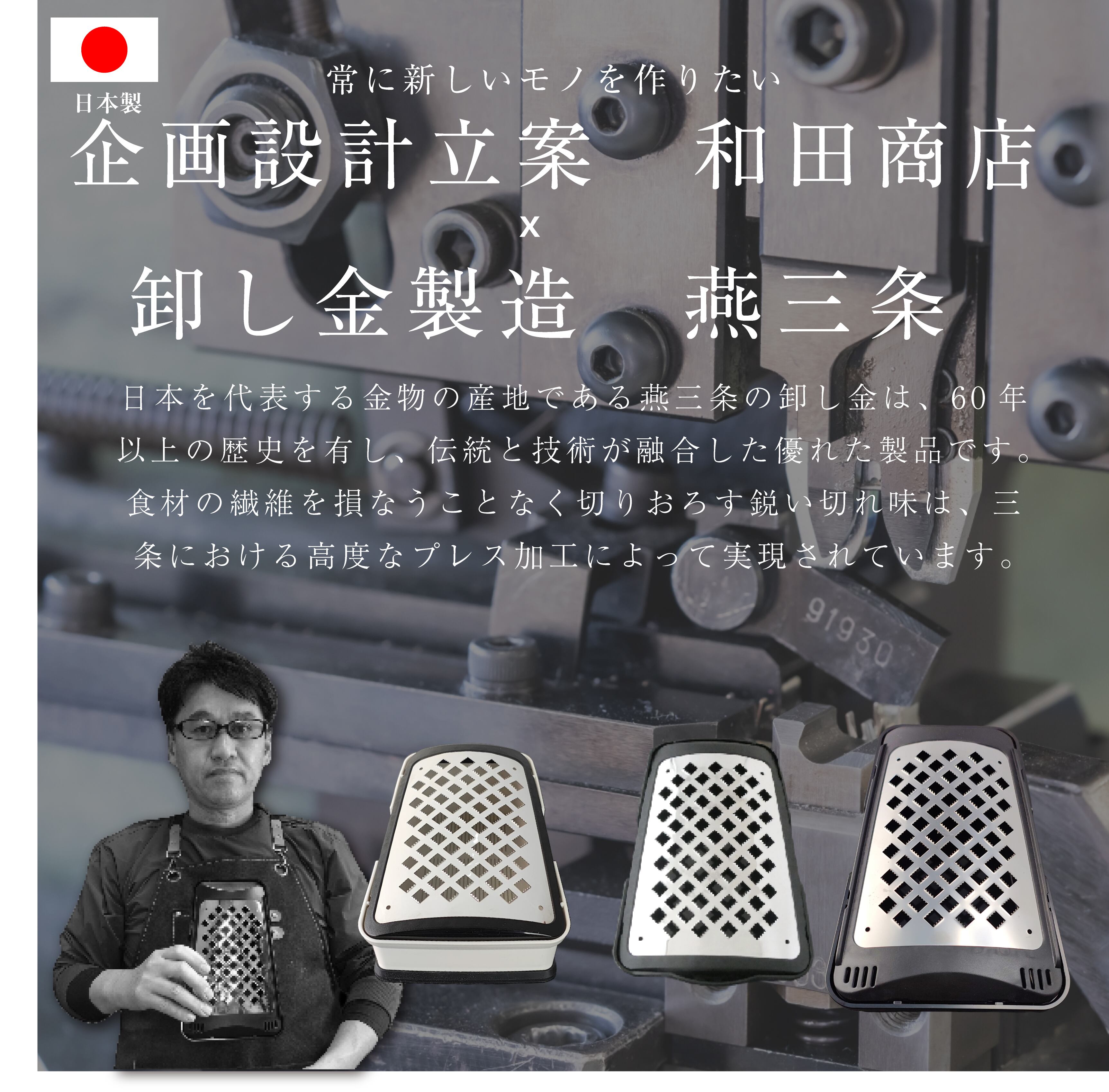 このおろし金は、新潟三条で丁寧に製造され、伝統技術とモダンなデザインが融合した逸品です。料理の質を高めたい方におすすめですので、ぜひこのプロおろしSPEEDYをお試しください。
